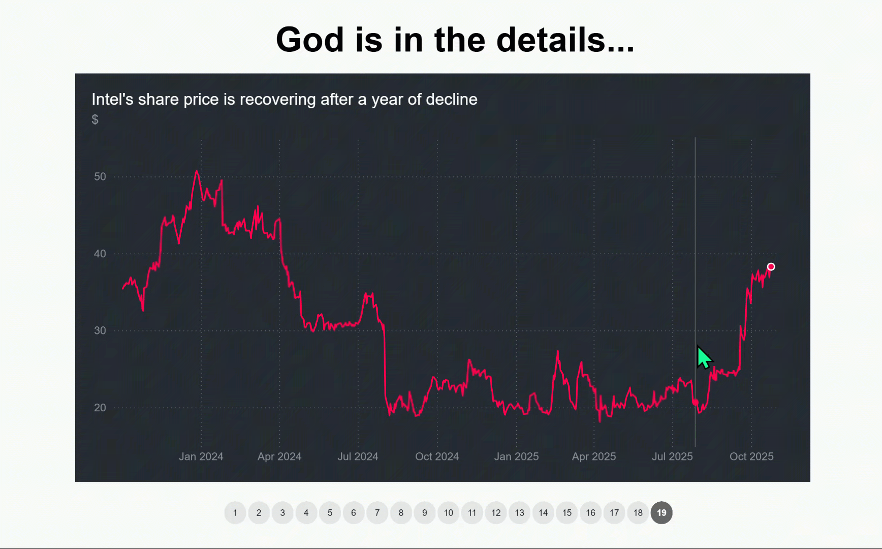 The powerful red dot in data graphics can ignite attention and bring focus to the decision makers so they can concentrate on the signals rather the noise. A simple colored point may lead to smart decisions.